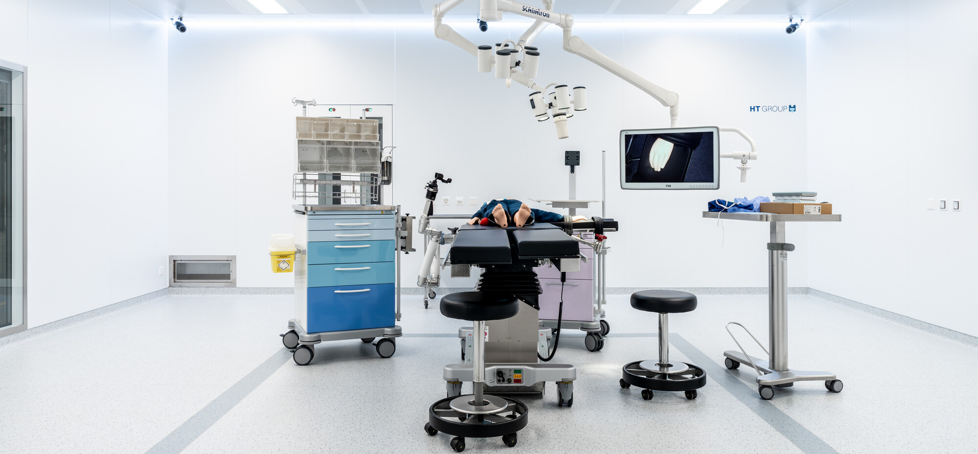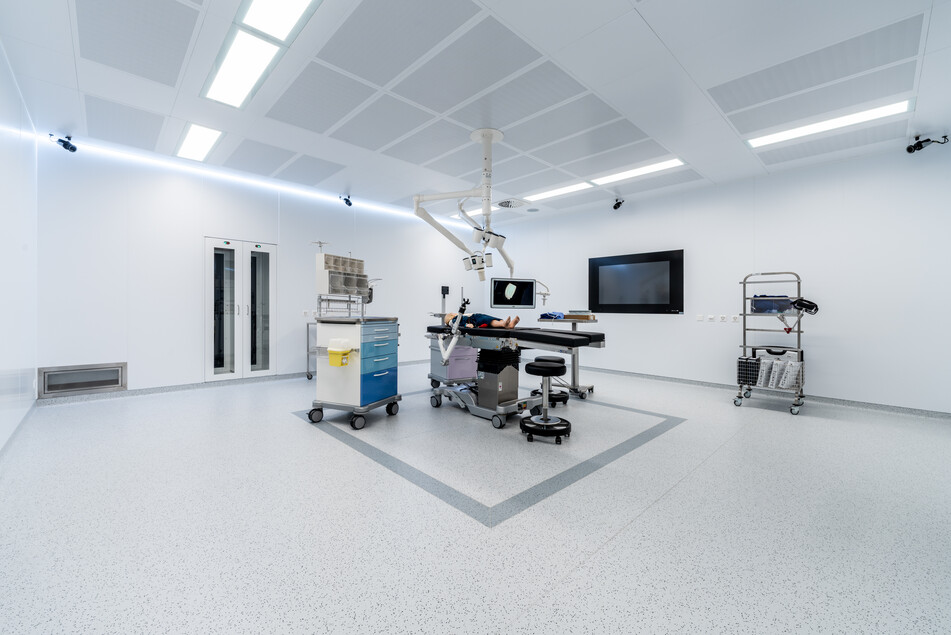 Unser 49 m² grosser OP-Testraum entspricht dem Standard zeitgemässer Spitäler. Materialien, Einrichtungen sowie Licht- und Geräuschverhältnisse bilden wir wirklichkeitsgetreu nach. Layouts, Prozesse, Arbeitsabläufe sowie medizinische Geräte und Systeme können unter realistischen Bedingungen getestet und optimiert werden.