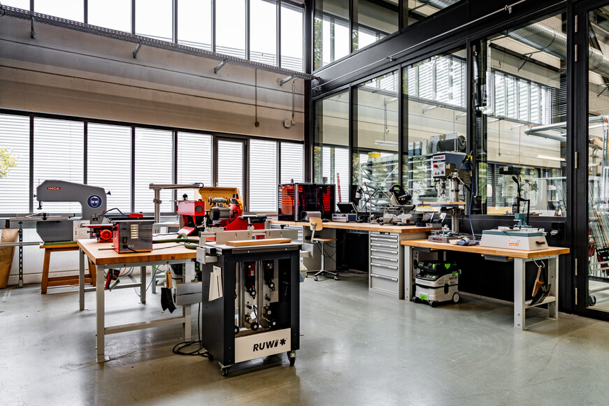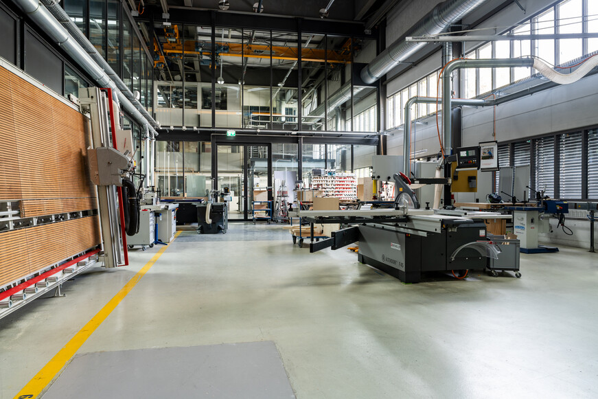 Die Werkstätten vereinen auf 1000 m2 Fertigungstechnolgien und Expertisen in den Bereichen Metall, Holz, Textil, Digital, Druck, Oberflächen und Kunststoff.
