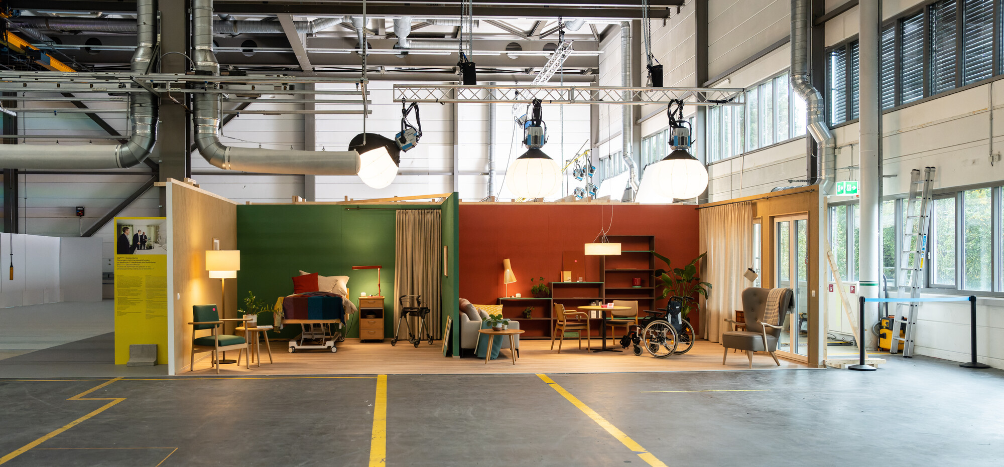 Structurés sous forme de prototypes, les espaces planifiés dans le Living Lab du SCDH peuvent être rapidement élaborés ou transformés, aménagés et installés à titre expérimental. Les espaces peuvent faire l’objet d’un contrôle à l’échelle 1:1, et les processus de travail et de traitement ainsi que les produits et les technologies sont testés dans l’environnement spatial avec la participation de toutes les parties prenantes. Les matériaux sont contrôlés et l’effet de facteurs tels que l’architecture intérieure, la lumière, la couleur, l’acoustique ou l’haptique et le positionnement des technologies peuvent être étudiés.